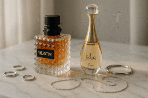 Combinamos elegancia y autenticidad en joyas y perfumes pensados para resaltar tu esencia.